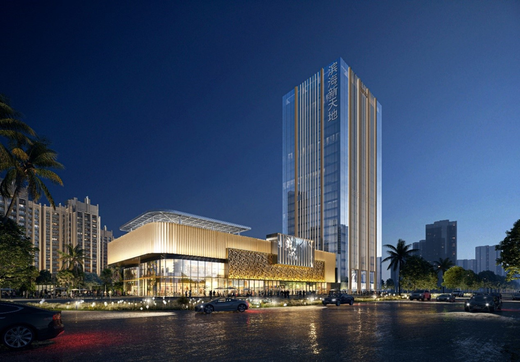 中國電建大灣區科創中心基地位于廣東省廣州市花都區,是由中電建(廣州)城市投資發展有限公司投資開發建設。該項目幕墻形式主要包括玻璃幕墻、鋁板幕墻等,總建筑面積約為62000平方米,幕墻面積38000平方米,建筑高度為162 1米。該項目是一棟超高層辦公樓,建成后將打造成為具備總部基地的地標性建筑。海口濱海新天地商業綜合體 位于海南省??谑?,是由